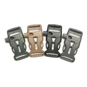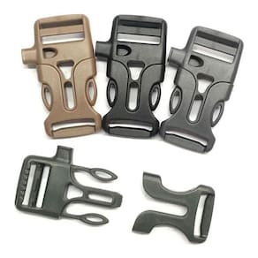 - Modelo do fecho: Arredondado - 2 partes que se encaixam - Material: POM(Polióxido de Metileno) - Cor: preto, cinza, cáqui e verde militar - Medida base interna: 20 mm (2 cm) - Altura externa: 58 mm (5.8cm)