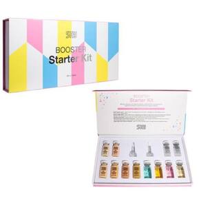 NO.1 Peptide Gold Ampoule: O produto no topo é rotulado como NO.1 Peptide Gold Ampoule. Contém ingredientes PDRN extraídos do sêmen do salmão, que têm efeitos regenerativos e anti-inflamatórios para a pele. Diferentes peptídeos melhoram as rugas e aumentam a firmeza da pele. NO.2 Peptide Gold Ampoule: O segundo produto é rotulado como NO.2 Peptide Gold Ampoule. Contém 99,9% de pó de ouro puro, juntamente com diferentes peptídeos como niacinamida para ajudar a iluminar a pele, e adenosina para reduzir as rugas. NO.3 Aqua Stem Cell Culture Ampoule: Este produto está em um frasco branco e é rotulado como Whitening Stem Cell Culture Ampoule. Contém vários extratos de células-tronco vegetais, peptídeos e niacinamida. Esses ingredientes ajudam a reduzir rugas e clarear a pele, melhorando sua elasticidade e suavidade. NO.4 Aqua Stem Cell Culture Ampoule: Este produto está em um frasco rosa e é rotulado como Aqua Stem Cell Culture Ampoule. Hidrata a pele seca através dos vários extratos vegetais presentes na fórmula. O ácido hialurônico ajuda a manter a pele fresca, hidratada ao reter a umidade, atuando como hidratante e umectante. NO.5 AC Stem Cell Gold Ampoule: Este produto está em um frasco azul-turquesa e é rotulado como AC Stem Cell Gold Ampoule. É ideal para pessoas com acne ou irritação da pele. Contém acetilhexapeptídeo-8 que aumenta a elasticidade da pele e oferece benefícios anti-inflamatórios, antibacterianos, regenerativos para a pele e cura de feridas.