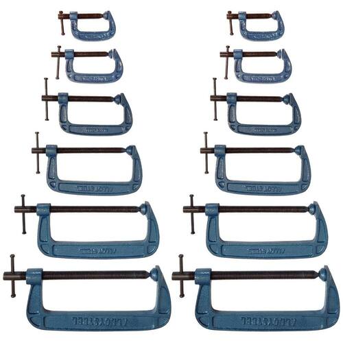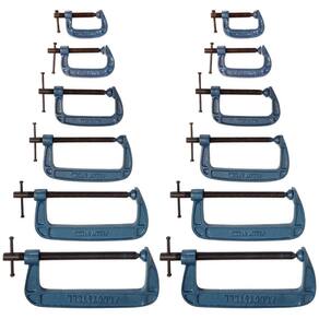Kit com 12 Grampos Sargento de Fixação 100mm Tipo C 2 A 10 Polegadas O grampo tipo C da EDA é uma ferramenta certa para você que trabalha na construção civil ou com pequenos reparos. Muito utilizado por pedreiros e marceneiros durante colagens, perfurações, cortes e montagens de peças - Marca: Excellent - Fornecedor: Importadora EDA - Modelo: KITCT-6X - Kit com 12 GRAMPOS SARGENTO: - 2 Grampo tipo C 50mm 2 Pol. - 2 Grampo tipo C 75mm 3 Pol. - 2 Grampo tipo C 100mm 4 Pol. - 2 Grampo tipo C 150mm 6 Pol. - 2 Grampo tipo C 200mm 8 Pol. - 2 Grampo tipo C 250mm 10 Pol. - Ferro fundido Nodular 42012 - Fuso em aço 1020 com rosca trapezoidal zincada - Corpo em ferro fundido - Para carpintaria e marcenaria - Utilizado em colagem e montagem de estruturas - É muito útil para fixar ferramentas temporárias - : 90 dias