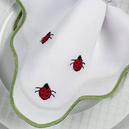 Kit 12 Jogos Americanos Guardanapos De Mesa Redondo Bordado Joaninha - Branco - Única