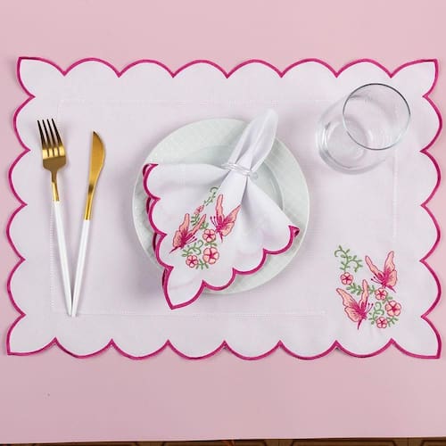Complete e enriqueça o visual da sua mesa com a Linha Jogo Americano Bordado . Seja para um jantar formal, um brunch descontraído ou qualquer outra ocasião, este jogo americano será o complemento ideal, refletindo seu gosto refinado e sua apreciação pela beleza nas pequenas coisas.