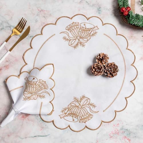 Transforme suas celebrações de Natal em momentos ainda mais especiais com o Kit Jogo Americano Guardanapos Sinos Natalino. Composto por 6 sousplats (jogo americano) e 6 guardanapos, este conjunto traz o espírito natalino à sua mesa com elegância e charme.