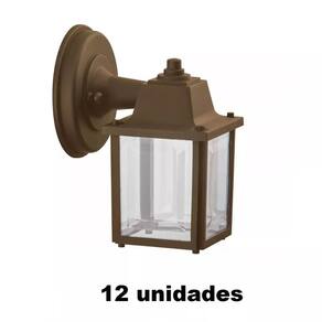 --kit com 12 unidades-- A arandela colonial em termoplástico é especial para usar em ambientes externos. Como possui proteção UV, ela resiste muito bem as ações do tempo. Uso Externo ou Interno Decrição: - Material: termoplástico injetado - Medidas: A 17,5cm x L 10,5cm x C 10,5cm - Proteção UV - Não desbota ou fica quebradiço ao longo do tempo. - Não enferruja - Soquete porcelana: E27 bocal comum - Tensão: 127/220v - BIVOLT - Potência máxima: 20 W - Corrente: 4 A Lâmpada não inclusa Marca: Não Informado