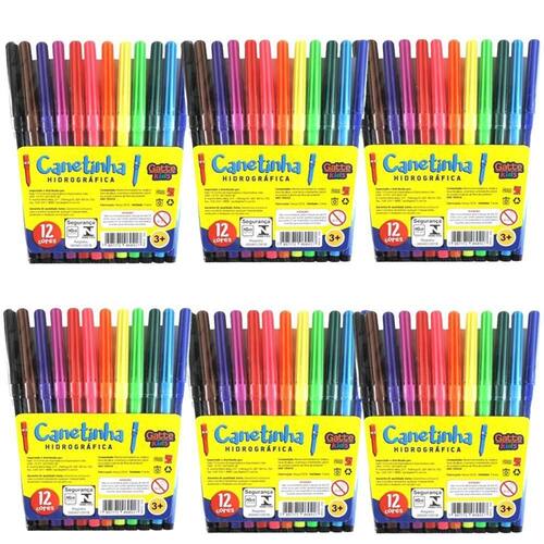 Canetinha hidrográfica Gatte com 12 cores, em embalagem plástica maleável. Ótima qualidade, ponta resistente, tinta a base de água e tampa antiasfixiante. Pode ser utilizada em escolas, para apresentação de trabalhos feitos em cartolinas, papelão, papel cartão, entre outros