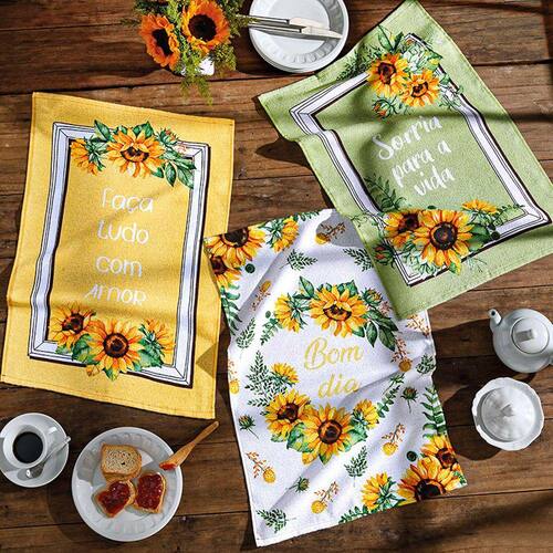Conteúdo da embalagem: Jogo 12 Panos de Copa Felpudo Dohler 100% Algodão 45 cm x 65 cm Girassol 01