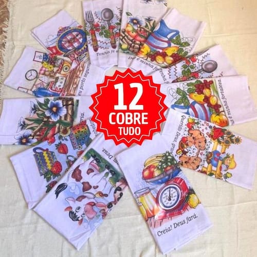 Kit 12 Pano De Prato Gigante Estampado 67X87 Cobre Tudo 100% Algodão Grande.