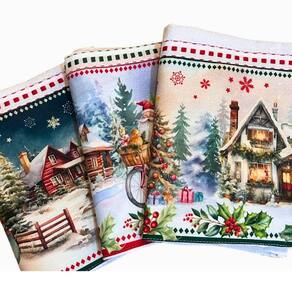 Detalhes Especiais - Cada pano possui uma trama reta e um acabamento de alta qualidade com bainha de costura dupla reforçada, garantindo durabilidade e um visual impecável. O barrado de 12 cm em 100% algodão traz estampas natalinas únicas que prometem alegrar seu ambiente.