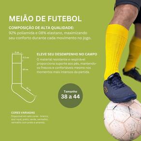 Preparados para o jogo? Com o nosso Kit 12 Pares de Meiões de Futebol para Adultos da marca Ramote, você estará pronto para entrar em campo com confiança e estilo. Estes meiões foram projetados para atender às necessidades de adultos com tamanhos de 38 a 44.