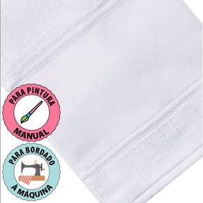Toalha felpuda com toque aveludado, uma das mais vendidas para artesanatos, com barra para pintura ou ponto russo, aplicações e bordados com 11,5 cm de espaço na altura da mesma. Produto de alta qualidade e beleza.