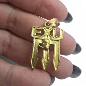 O Pingente Tridente Exu Dourado Caveira Espiritual (2,5 cm) é mais do que um acessório — é um amuleto de poder e conexão espiritual. Representando o tridente de Exu, símbolo de abertura de caminhos, proteção e comunicação entre os planos, aliado à caveira, que simboliza transformação e sabedoria ancestral, essa peça carrega forte significado espiritual.