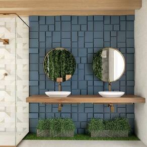 O tamanho das placas é de 50x50cm, exceto para os modelos piramidal e prisma, que possuem tamanho de 48x48cm. Essa variedade de tamanhos permite uma maior versatilidade na hora de criar a composição na parede.
