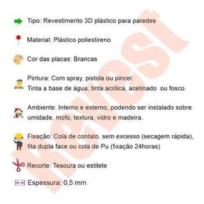 Além disso, as placas podem ser instaladas tanto em ambientes internos quanto externos. Elas são ideais para paredes com umidade, mofo, textura, madeira e azulejo. E o melhor de tudo: não é necessário pintar as placas, pois elas já vêm na cor branca.