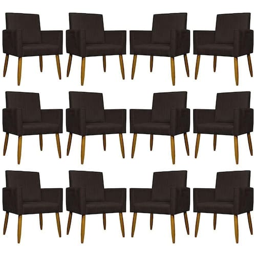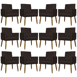 Kit 12 Poltronas Decorativas Mari Pé Palito Castanho - Marrom Suede