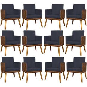 KIT 12 POLTRONAS LIS CORINO E SUEDE CORES PÉ PALITO 30 CM CASTANHO