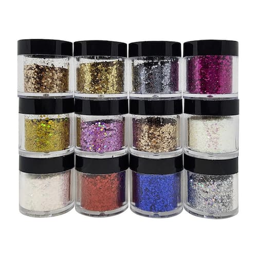Kit 12 Potes Glitter Flocado Grande 61810 -caixa com 12 unidades; -potes com2,5cm de altura; -cores podendo haver repetições; -glítter bola; -flocado flocos maiores que o gliter fino -com efeito furta cor altera de acordo com a luz -alto Brilho; -ideal para Decoração de unhas; -ideal para Maquiagem artística; -ideal para Slime; -ideal para decorações em óculos, e capas de celulares; -ideal para Artes e desenhos em geral; -fácil de aplicar; -referência 61810; -produto compatível com outras marcas; -fabricado na China. CUIDADOS COM O PRODUTO -manter na embalagem mantendo-os separados; -manusear com delicadeza; -deixar longe de ventiladores e umidade. MODO DE USO Aplique a base na superfície e ainda úmida, jogue o Glitter e dê leve batidinhas para retirar o excesso. Finalize com extra brilho ou top Coat. Para uso artístico , proceda da mesma forma utilizando bases e finalizadores específicos. COMPOSIÇÃO Plástico Copolímero Ean: 7898585618108