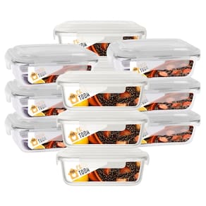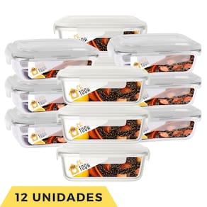 Kit 12 Potes Vidro Retangular Tampa Com Travas 640ml Transparente