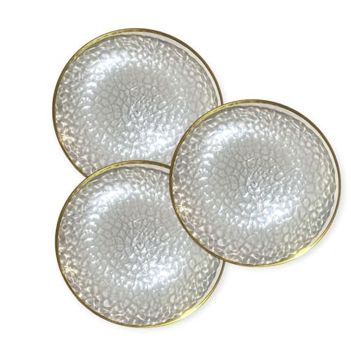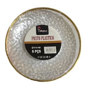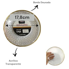 Design Elegante: A borda Dourada combina beleza e requinte, tornando cada refeição uma experiência especial. Material Durável: Feitos em acrílico de alta qualidade, os pratos são resistentes, leves e perfeitos para uso interno e externo. Versatilidade: Ideal para servir saladas, entradas, pratos principais ou sobremesas em festas, celebrações e reuniões familiares. Fácil de Limpar: Podem ser lavados à mão, facilitando a limpeza após o uso.
