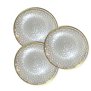 Contém: 12 unidades Pratos Refeição Redondo Transparente Acrílico Borda Dourada 25,3cm