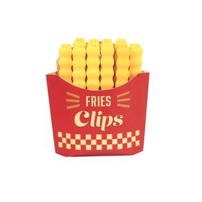 Transforme a organização da sua cozinha com o divertido e funcional Kit com 12 Prendedores de Pacotes Fries Clips Inspirado no visual de uma embalagem de batatas fritas, este kit traz um toque de criatividade ao seu dia a dia enquanto mantém seus alimentos sempre frescos e bem fechados.