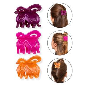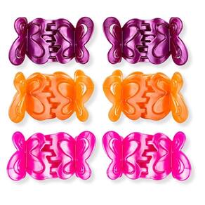 O kit ideal para adultos e crianças com seu design único de borboleta, em três cores peroladas, rosa, roxo e laranja, a presilha pode ser utilizada por adultos e penteados infantis.