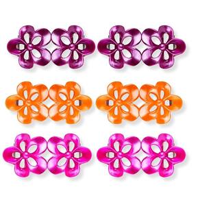 O kit ideal para adultos e crianças com seu design único de flor, em três cores peroladas, rosa, roxo e laranja, a presilha pode ser utilizada por adultos e penteados infantis. Composto por 12 unidades de presilhas, com 4 unidades de cada cor, o kit é versátil e um acessório indispensável para penteados presos, semi presos e penteados infantis. Suas garras ergonômicas e feitas de plástico não danificam os cabelos Ideal para carregar na bolsa com seu tamanho compacto.