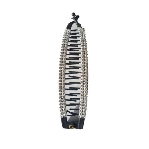 Kit 12 Presilhas de cabelo preta banana com pedra Strass 15cm