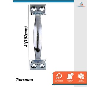 Características técnicas: Modelo alça Tamanho 4" (102mm) Material: Alumínio É utilizado em portas ou gavetas. Quantidade: 12 unidades Ref.: 11084109 Marca: Starfer