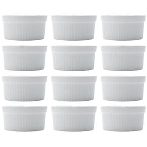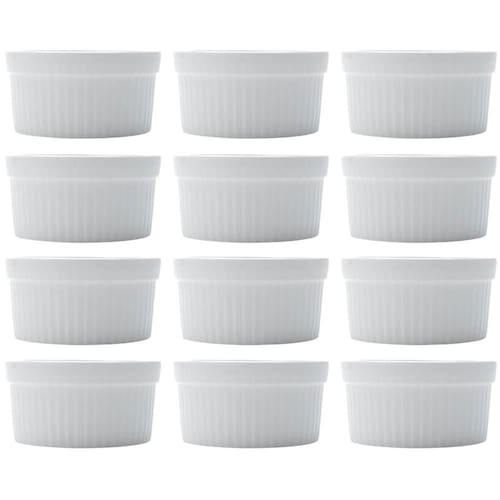 Kit 12 Ramekins Porcelana Branco 240ml Lyor Canelado Tigelas Suflês Caldos.