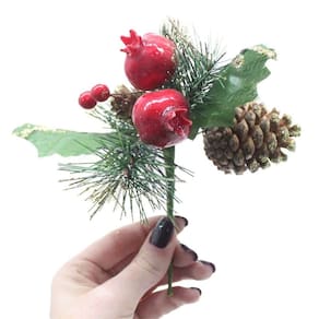 Kit 12 Ramos Romã Decoração De Natal Artificial Com Brilho 16cm