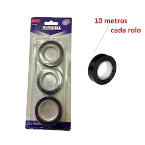 Contém: 12 rolos de Fita Isolante em PVC de 10mx17mm ALFACELLbrbrMaterial: pvc com adesivo PSA- Classe BbrMedidas aproximadas: 10M x 17mmbrCor: PretobrMarca: ALFACELLbr-Fácil aplicar e manusear, ideal para pequenos reparos elétricos, reforço em cabos de ferramentas e manutenções.brbrbrImagens meramente ilustrativasbr Ean: 7796907412154
