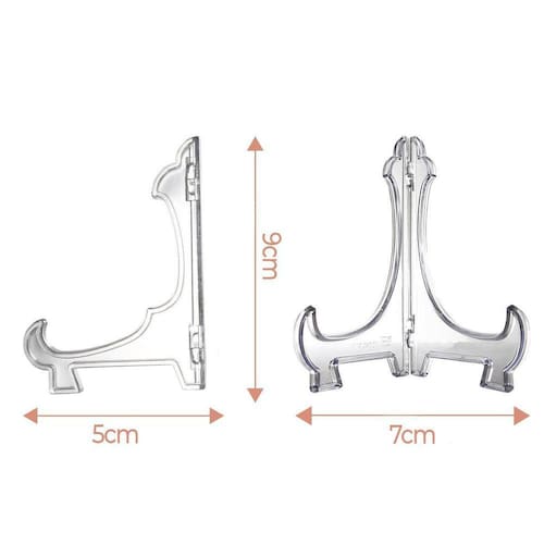 Kit 12 Suportes 9Cm Para Quadros Discos Pratos Decoração Suporte de 9cm é super leve, dobrável e cabe em qualquer cantinho ideal para decoração de sala, quarto, home-office ou escritório. Utilize no Rack, estante, painel de TV, mesa de cabeceira, mesas, buffets, prateleiras e aparadores. -utilize o suporte para apoiar e exibir aquele Livro ou Revista que estão guardados e que você tanto gosta; -incrível para LP's, pratos decorativos, quadros, azulejos personalizados, porta retratos e muito mais outros itens; -relembre aos momentos, pegue aquele LP que marcou época e utilize na estante para decorar e encantar os familiares; -decoração com discos de vinil está super em alta porque o ambiente fica moderno e descolado; -pode ser utilizado para expor produtos em Vitrine de lojas; Dica: O truque é você aproveitar itens guardados para decorar, contar uma história e relembrar de bons momentos. Utilizar Lp's, Livros, Revistas, Azulejos Decorativos, Quadrinhos e porta retratos na decoração é super tendência. Caraterísticas: Altura: 9cm Comprimento: 5cm Peso: 10g Conteúdo: - 12 x Suporte em Acrílico Transparente