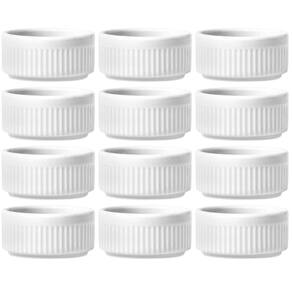 Kit 12 Tigelas Ramekins Porcelana 130ml Canelado Germer Branco Sobremesas Molhos Cremes.