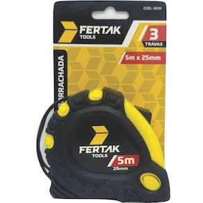 Kit com 12 Trenas 5m x 25mm Fertak Tools O Kit com 12 Trenas da Fertak Tools é a solução ideal para quem busca precisão, resistência e praticidade em diversas tarefas de medição. Com fita de 5 metros de comprimento e 25 mm de largura, cada trena proporciona excelente visibilidade, firmeza e durabilidade, sendo perfeita para ou doméstico. Fita larga 25mm para maior estabilidade em longas medições Comprimento de 5 metros, ideal para obras e projetos variados Trava de segurança para medições mais precisas Corpo em ABS resistente com revestimento emborrachado Clip de cinto e alça de pulso para transporte seguro e prático Gancho metálico com reforço para maior vida útil Com este kit, você garante qualidade e economia, tendo trenas sempre disponíveis para sua equipe ou