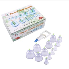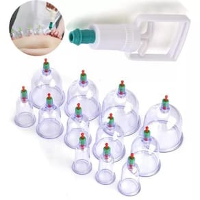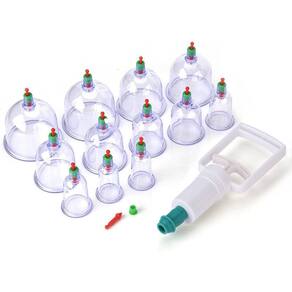 Massageador com kit de 12 copos ventosa e bomba de sucção. Oferece uma massagem surpreendente, que alivia as tensões do dia-a-dia e melhora a sua qualidade de vida.