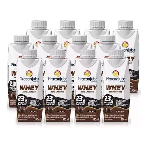 12 Unidades Bebida Láctea Uht Para Dietas Com Restrição De LactoseProteína para os músculos;Cálcio para os ossos;Colágeno para as articulações ;Ideal para manter o corpo em movimento.O Piracanjuba Whey é uma bebida láctea proteica, composta de 23g de proteínas, 5g de BCAA*, 4g de colágeno, sem adição de açúcar**, baixo teor de gorduras***, zero lactose e rico em cálcio. O produto está disponível em embalagem de 250 ml