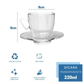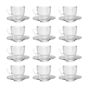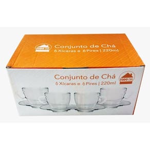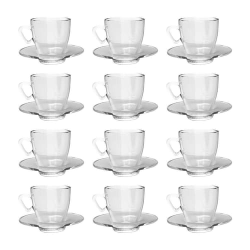 Kit 12 Xícaras Transparente Chá 220mL C/ Pires Mesa Posta