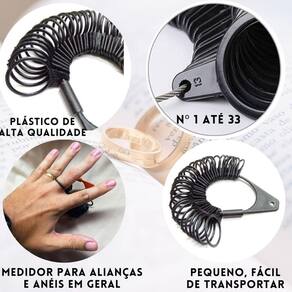 Kit 12Un Aneleira Plástica + 12Un Pau Medidor Anel Aliança Dedo 1º À 33º Aneleira plástica com tamanhos de 1 ao 33 é indicado para medir dedo, para alianças e namoro, noivado e casamento, assim como anéis de modo geral. Fácil de usar e operar a preços acessíveis. Ferramenta prática do tamanho da joia do tamanho do dedo para o joalheiro. Descrições: Leve, portátil tomado e tão conveniente. Alto desempenho e em acabamento requintado. É preciso, permite que você tome o tamanho do seu dedo. Adequado para uso doméstico ou uso semi-.