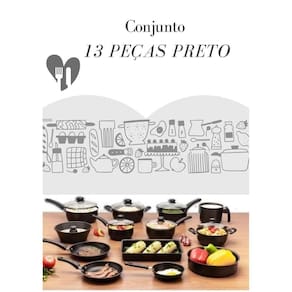 O conjunto de panelas mais completo com a qualidade que sua família merece e com o preço justo que seu bolso mereceAs panelas são em alumínio com revestimento antiaderente que além de facilitar a preparação de alimentos com maior rapidez e facilidade, torna a hora de lavar a louça uma tarefa mais simples.Os cabos, alças e pegadores da tampa são anatômicos em baquelite antitérmico, proporcionando maior segurança e durabilidade com elegância e modernidade para a sua cozinha Ideal para cozinhar no dia a dia, proporciona qualidade e conforto.Material: TeflonAntiaderente: SimEspessura Material: 1,5mmCor: Preto ou VermelhoEmbalagem: Branca ou Parda01 - Panela de 14cm de diâmetro01 - Panela de 16cm de diâmetro01 - Panela de 18cm de diâmetro01 - Panela de 20cm de diâmetro01 - Caçarola de 16 cm de diâmetro01 - Caçarola de 20 cm de diâmetro01 - Fervedor de 14 cm de diâmetro01 - Frigideira de 16 cm de diâmetro01 - Frigideira de 18 cm de diâmetro01 - Frigideira de 20 cm de diâmetro01 - Forma de Bolo 25 cm de diâmetro01 - Forma de Bolo 30 cm de diâmetro01 - Assadeira retangular 30 cm de diâmetro01 - Panela de Pressão 2,5 litrosTodos os nossos produtos são devidamente embalados com plástico bolha e caixa de papelão. Marca: Alumínio Imperial