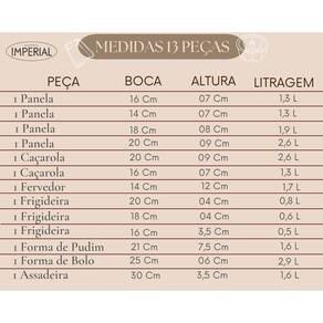 O conjunto de panelas mais completo com a qualidade que sua família merece e com o preço justo que seu bolso mereceAs panelas são em alumínio com revestimento antiaderente que além de facilitar a preparação de alimentos com maior rapidez e facilidade, torna a hora de lavar a louça uma tarefa mais simples.Os cabos, alças e pegadores da tampa são anatômicos em baquelite antitérmico, proporcionando maior segurança e durabilidade com elegância e modernidade para a sua cozinha Ideal para cozinhar no dia a dia, proporciona qualidade e conforto.Material: TeflonAntiaderente: SimEspessura Material: 1,5mmCor: Preto ou VermelhoEmbalagem: Branca ou Parda01 - Panela de 14cm de diâmetro01 - Panela de 16cm de diâmetro01 - Panela de 18cm de diâmetro01 - Panela de 20cm de diâmetro01 - Caçarola de 16 cm de diâmetro01 - Caçarola de 20 cm de diâmetro01 - Fervedor de 14 cm de diâmetro01 - Frigideira de 16 cm de diâmetro01 - Frigideira de 18 cm de diâmetro01 - Frigideira de 20 cm de diâmetro01 - Forma de Bolo 25 cm de diâmetro01 - Forma de Bolo 30 cm de diâmetro01 - Assadeira retangular 30 cm de diâmetro01 - Panela de Pressão 2,5 litrosTodos os nossos produtos são devidamente embalados com plástico bolha e caixa de papelão. Marca: Alumínio Imperial