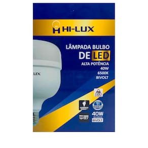 ESPECIFICAÇÕES - Índice de proteção: IP20 - Tensão: Bivolt Automático 100V - 240V - Ângulo de abertura: 220º - IRC**: >80 - Vida útil: 25.000 horas - Potência: 40W - Fluxo luminoso: 3200 lumens - Base: E27 - Temperatura de cor: 6500K (Branca) - Eficiência luminosa: 80lm/W -Dimensão (mm): 118mm x 168mm