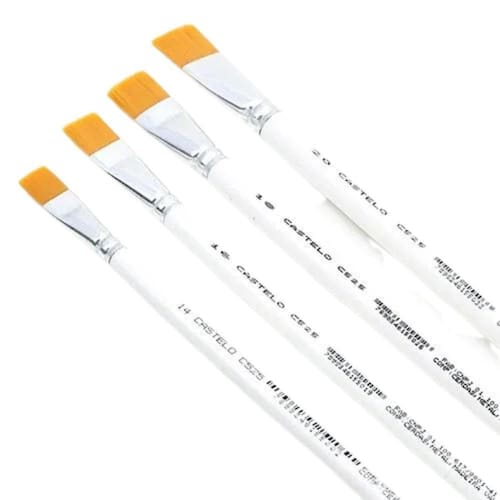 O Kit Pincéis Chatos Kit 14 Com 4 Un Castelo Pincéis é perfeito para artistas e artesãos que desejam obter um acabamento de qualidade em suas pinturas e trabalhos manuais. Este kit é composto por 4 pincéis chatos de cabo longo branco, especificamente desenvolvidos para pintura em tela e artesanato em geral.