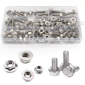 141 parafusos e porcas sextavadas flangeadas tamanhos variados