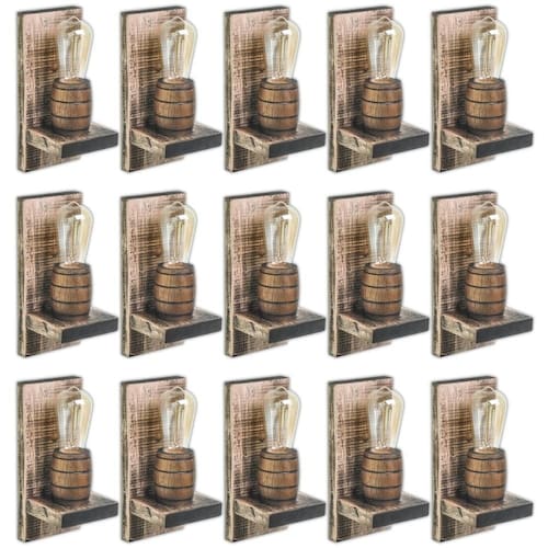 Kit 15 Arandelas Barril Delenha Decor Madeira Maciça Rústico