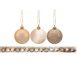 -Kit 15 Bolas Natal Mista Glitter, Fosca, Lisa Champagne Mini 3cm - Master Christmas