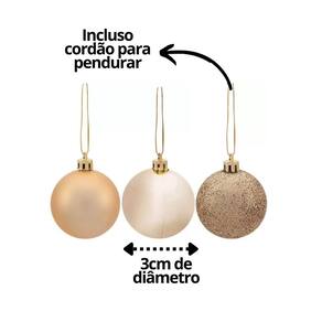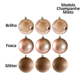 Kit 15 Bolas Natal Mista Glitter, Fosca Brilho Champanhe 3cm