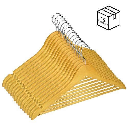 Os cabides são produzidos em madeira de alta qualidade, garantindo sua durabilidade e resistência. Eles possuem um gancho giratório que permite pendurar as roupas de forma prática e fácil. As medidas externas dos cabides são de 45cm x 22cm largura x altura e o gancho suporta tubos de até 4cm.
