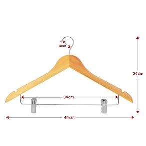 O Kit 15 Cabides de Madeira é produzido em madeira de alta qualidade, garantindo resistência e durabilidade. As presilhas de metal são ideais para pendurar calças e saias, mantendo-as no lugar de forma segura. Já o gancho giratório de metal permite pendurar facilmente os cabides em barras de até 4cm de diâmetro.
