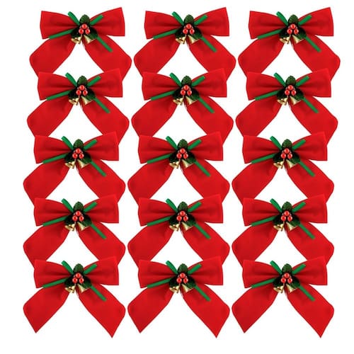 -15 unidades Laço Vermelho Aveludado 11x11cm Decorado Mini Sinos e Folhagens Berries