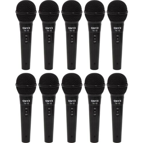 Microfone TK-10 com fio Onyx, produzido em liga e zinco é um microfone durável, com sistema de microfone dinâmico e ótimo custo benefício. É um modelo unidirecional (cardioide) dinâmico, altamente eficaz para uso geral. Testado e aprovado por profissionais do ramo. Aplicações: Palestras, palcos e estúdiosEspecificações- Marca: Onyx- Tipo: Com Fio- Modelo: TK-10- Corpo de liga de zinco- Filtro anti puff- Chave on-off- Conector XLR- Impedância: (1 khz) 700 ohms 30%- Sensibilidade: -72,3 db (0db=1V/pa at 1KHZ)- Capsula: Unidirecional- Frequência de Resposta: 85Hz a 11kHz- Comprimento do Cabo: 3 m- Medidas Aproximadas do Microfone: 5 x 5 x 18 cm- Peso Aproximado do Microfone: 100 gConteúdo da Embalagem- 15 Microfones Dinâmicos com Fio TK 10 Onyx*imagens meramente ilustrativas