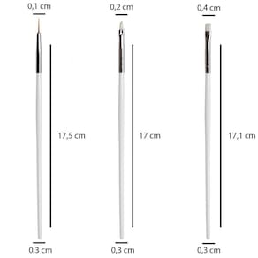 pincéis de alta qualidade e ótimo custo-benefício. Desenvolvidos para decoração de unhas e alongamentos como de gel, acrílico e porcelana. Permitem a criação de lindos desenhos, modelos, formas e pinturas artísticas, em unhas naturais ou artificiais. Indispensáveis para manicures, pedicures e designers de unhas. Leves e fáceis de manusear. Para ou doméstico. - alta qualidade;